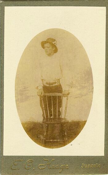 Det är än så länge ganska få bilder som vi har identifierat, men nu har Göran Stenmark hittat ett nytt foto från Erik Olof Krages fotografverksamhet. Krage som föddes i Uman Eden och bosatte sig vid Österådammet Sunnansjö, vid gamla vägen mot Grundtjärn. Hans bilder är i regel tagna utomhus. Någon egen ateljé verkar han inte ha haft, vad vi vet.
