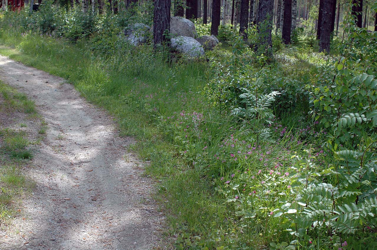 Ifrågavarande vägsträcka var redan i sin helhet bruten. Det påvisades dock att densamma på vissa ställen var olämpligt lagd varföre omläggning på dessa ställen vore önsklig. Så omstakades vägen förbi gårdstomten å hemmanet Näset. Vägen som förut lagts över gårdsplanen mellan hemmanets åbyggnader förlades nu norr om dessa hus.”