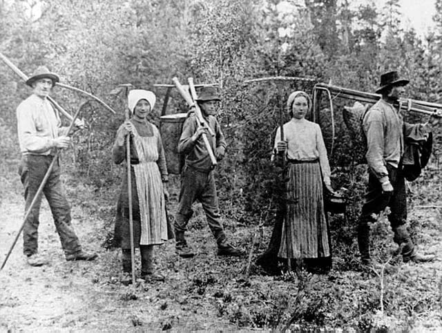 Slåtterfolk från Eden på väg hem från Österådammet. Foto: Erik Olof Krage.