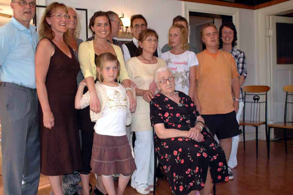 Fr.v. Flemming Petersen, Gunnel Petersen, Anna Karlström, Elisabeth Pedersen, Ebba Petersen, Erling Karlström, Lennart Karlström, Maria Karlström, Sofia, Beatrice Karlström, André Karlström, Love Karlström, Rosmarie Karlström.