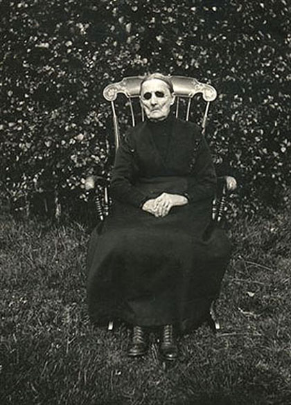 Brita Andrietta Lundin, dotter till Hans Hansson Molin Sunnansjö. Hade en faster, Anna Magdalena Borgström som bodde på "Nybygget" i Sunnansjö som änka. Foto från sista åren av Andriettas liv, då nästintill blind. Källa: barnbarnsbarnet Karin Wassdahl.