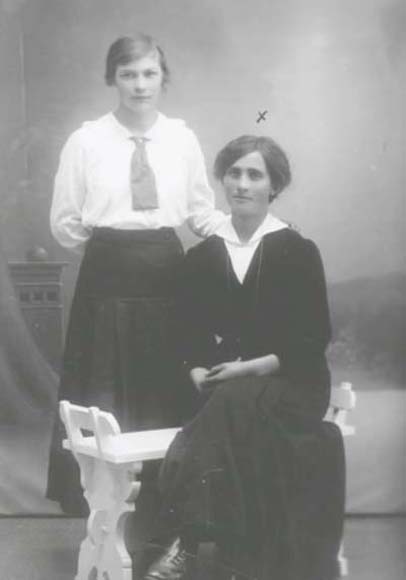Ida Molin född Edlund, Östansjö. Den stående flickan okänd.