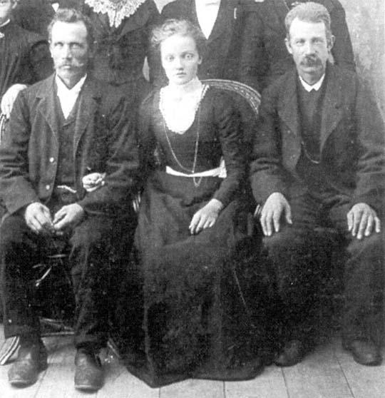 "Pelles". Torparen Petrus "Pelle" Eriksson 1855-1911 från Backen med hustrun Kajsa "Karin" Greta Sjölund 1860-1944 och de fyra barnen Jenny 1892-1912, Agnes 1894-1912, Augusta 1897-1918, Albert 1898-1941, Johan 1903-1995.